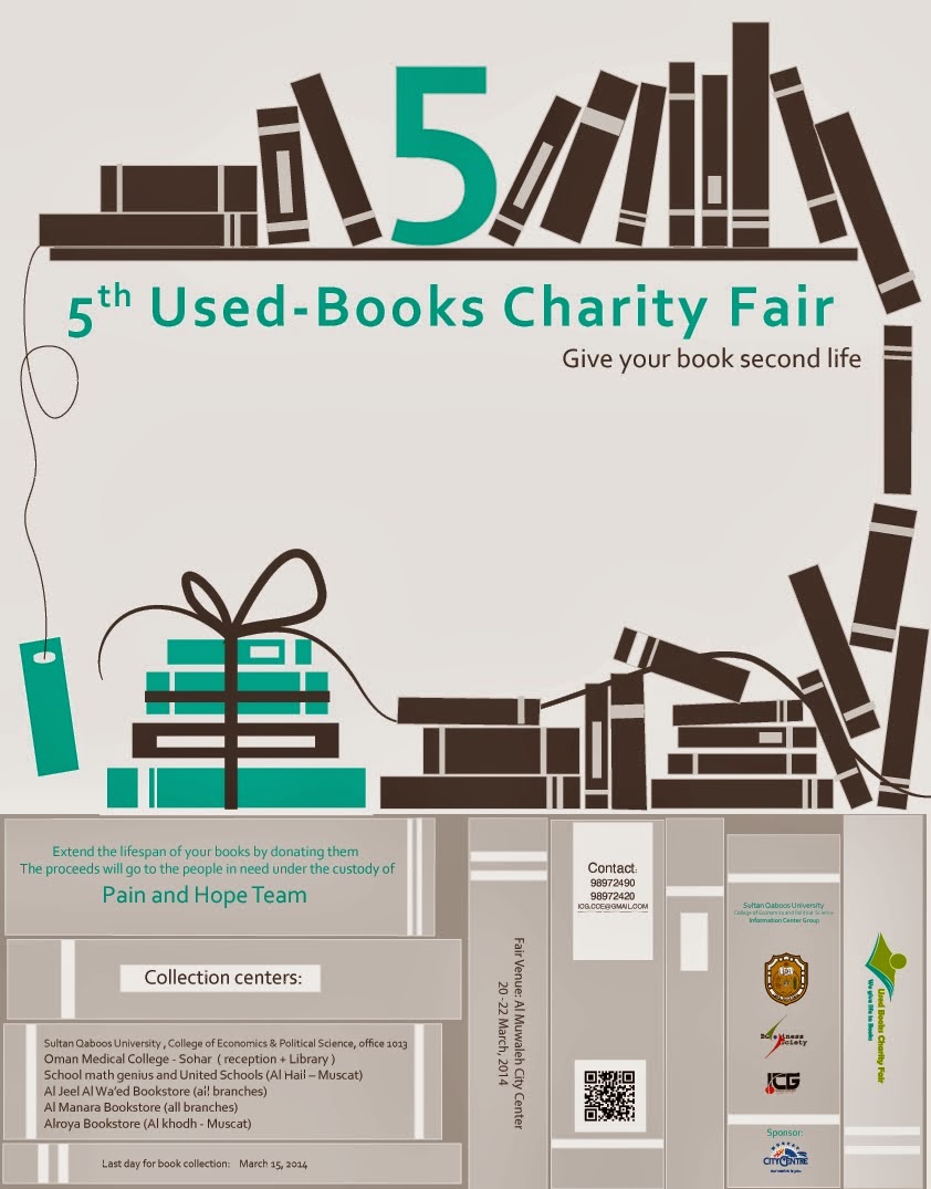 SQU is running the 5th edition of the 'Used Book Charity Fair' where book are given a second life. this year the proceed will go to the 'Pain and Hope Team'.